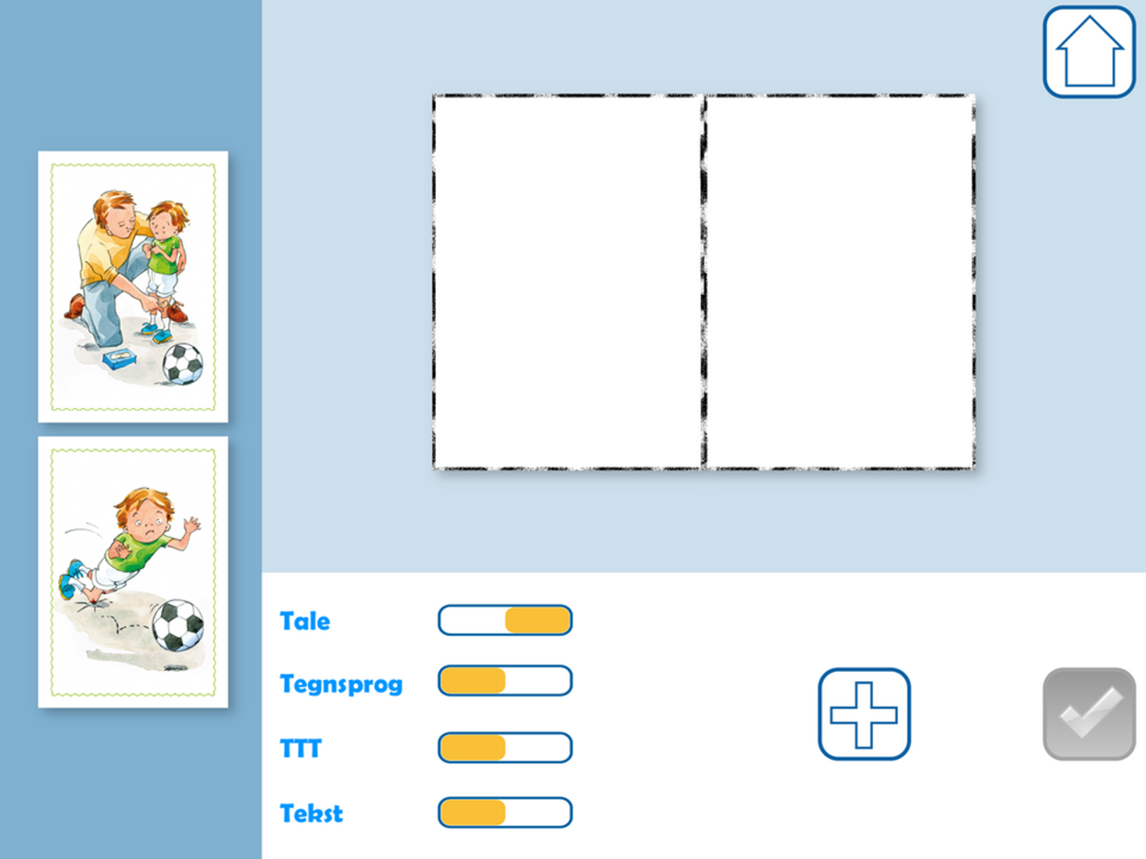 Eksempel på at kunne vælge imellem historier med 2 eller 3 billeder