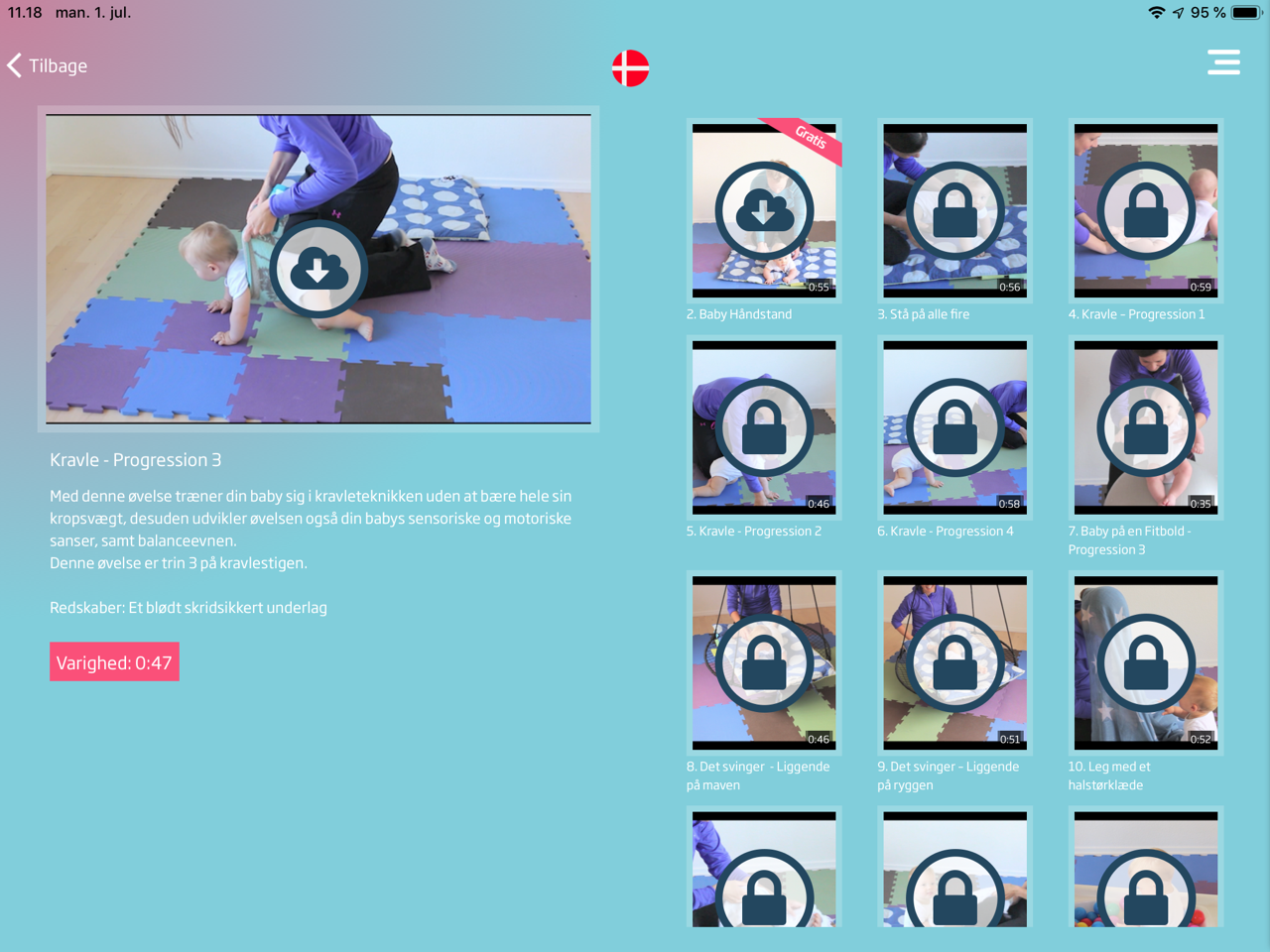 Babygymnastik og leg er en app med simple video øvelser, der viser, hvordan du kan være aktiv sammen med dit barn og styrke barnets motorik ud fra barnets udviklingsniveau.