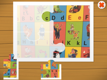 På alle niveauer vises billedet i baggrunden, så der gør det lettere for barnet at trække brikkerne hen på det rigtige sted.