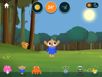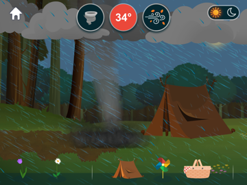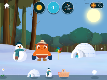 En app hvor de mindste børn lærer om vejrforhold, naturfænomener, og årstiderne. Børnene skaber deres egen vejrforhold ved at indstille på sol, temperatur, blæst og klæde figurer på til vejret. I kan skabe tordenvejr, plante planter, en regnbue og få en iglo til at smelte.Figurerne klædes på efter vejrforholdene. Har de fået det forkerte tøj på til vejret, vil de enten svede eller fryse.