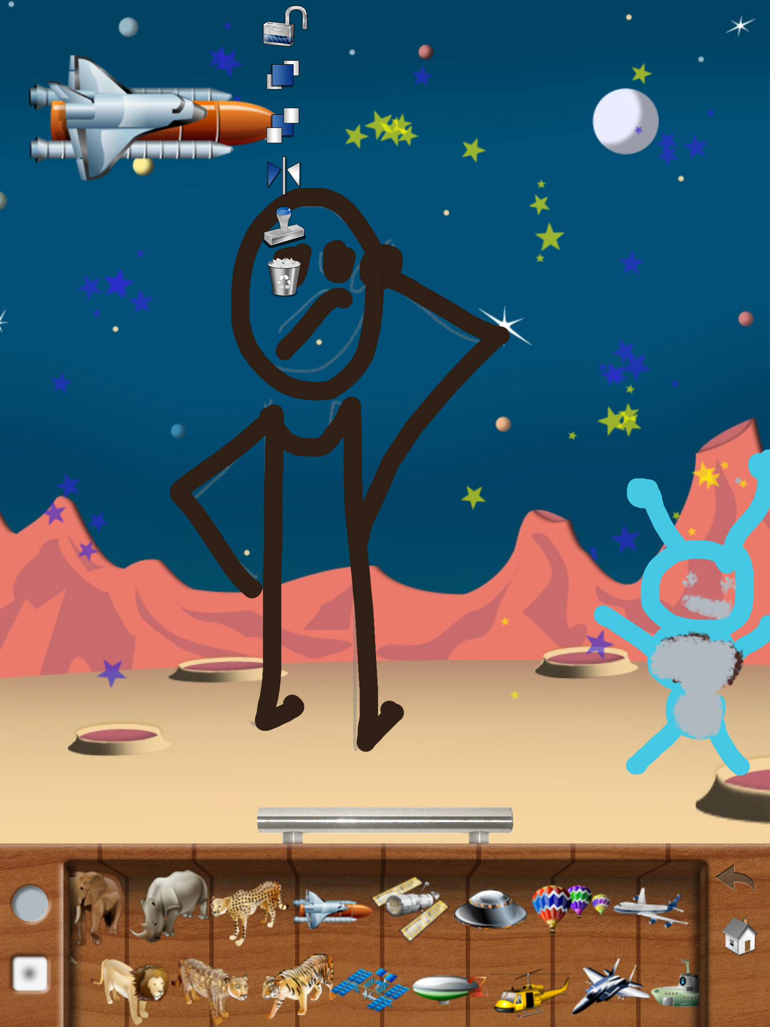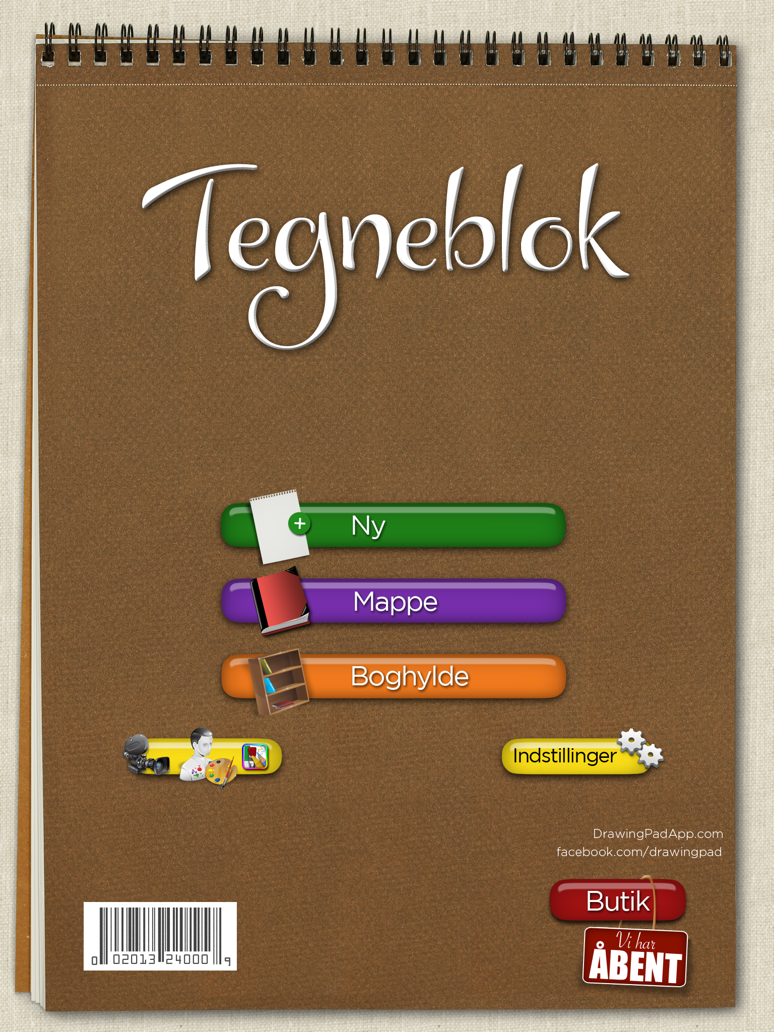 Drawing Pad giver mulighed for at producere sit eget kunstværk, men også et fælleskunstværk. Man kan begynde på et tomt lærred, eller man kan arbejde med udgangspunkt i et foto fra iPadens kamerarulle.